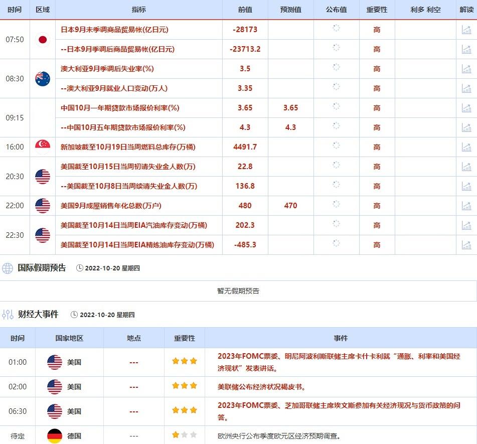 10月17日,投资者首先要关注欧洲央行副行长金多斯的讲话,了解他对欧元区经济和欧银政策的最新看法。金多斯在9月中旬表示,欧元区经济放缓或可能出现衰退将不足以控制住通胀,欧洲央行将不得不继续加息。