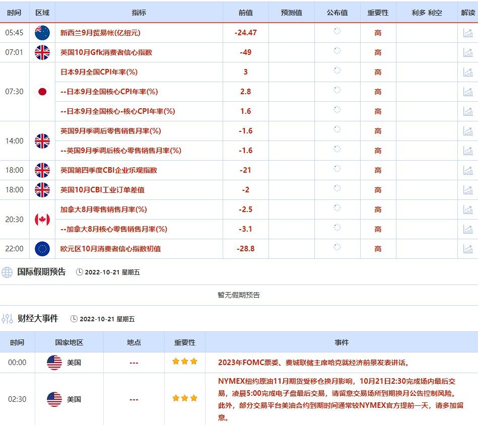 ⑤10月21日(周五)关键字:日本9月CPI,费城联储主席哈克