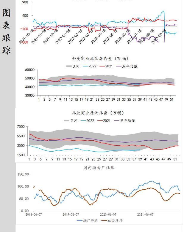 供应端:据美国能源信息署最新数据显示,据美国能源信息署最新数据显示,截止2022年10月7日当周,包括战略储备在内的美国原油库存总量8.47781亿桶,比前一周上升218.9万桶;美国商业原油库存量4.39082亿桶,比前一周上升987.9万桶;战略原油库存量4.08699亿桶,比上一周下降769万桶;美国汽油库存总量2.09482亿桶,比前一周上升202.2万桶;馏分油库存量为1.06063亿桶,比前一周下降485.3万桶。商业原油库存比去年同期高2.84%,比过去五年同期低0.73%;汽油库存比去年同期低6.11%,比过去五年同期低约7.97%;馏份油库存比去年同期低17.98%,比过去五年同期低23.79%。