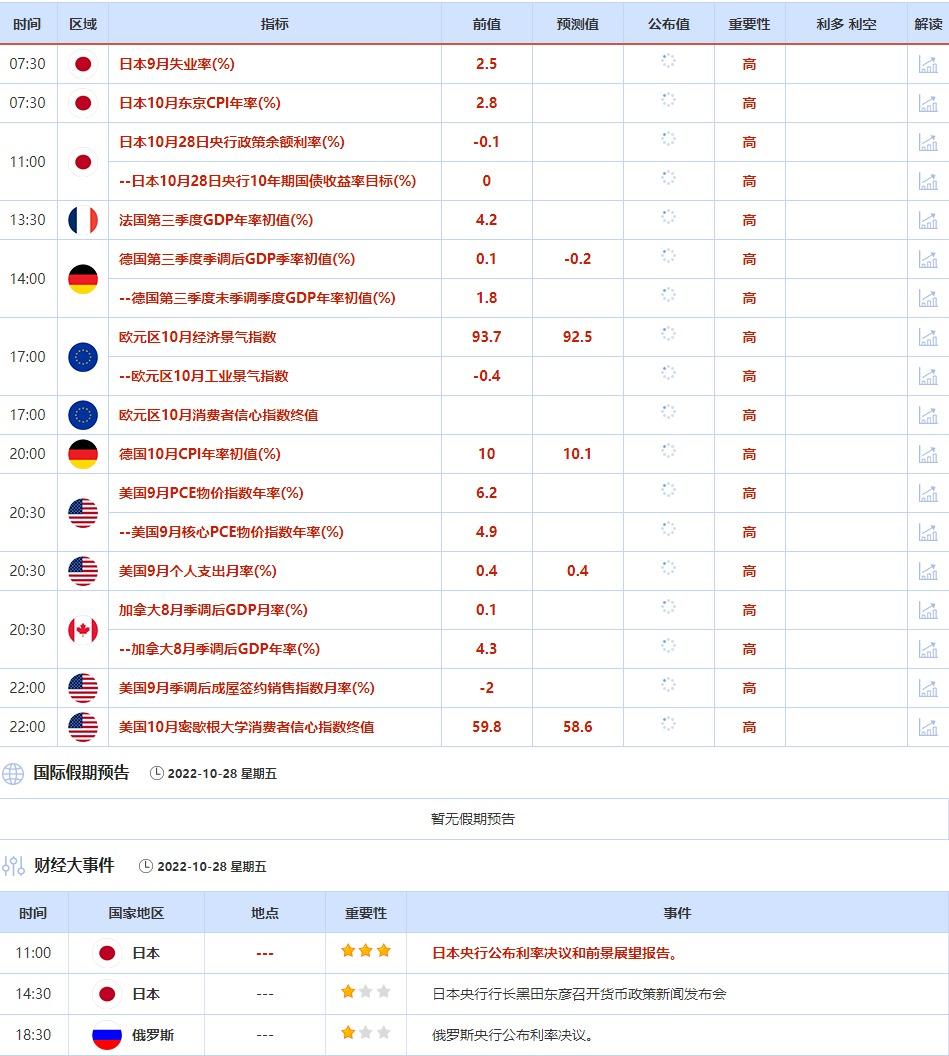 ⑤10月28日(周五)关键字:日本10月CPI,日本央行利率决议,欧元区10月经济景气指数