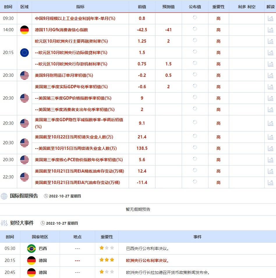 ④10月27日(周四)关键字:美国截至10月22日当周初请失业金人数,欧洲央行利率决议