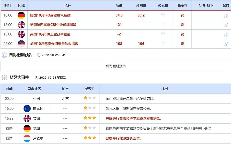 ②10月25日(周二)关键字:德国10月IFO商业景气指数,欧盟能源部长会议