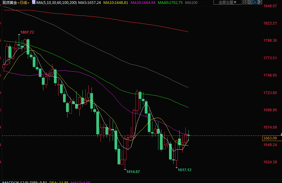 市场预计,美联储将在11月1-2日的政策会议上把指标隔夜利率再提高75个基点,12月有可能会缩小加息幅度。美国加息会增加持有无孳息黄金的机会成本。