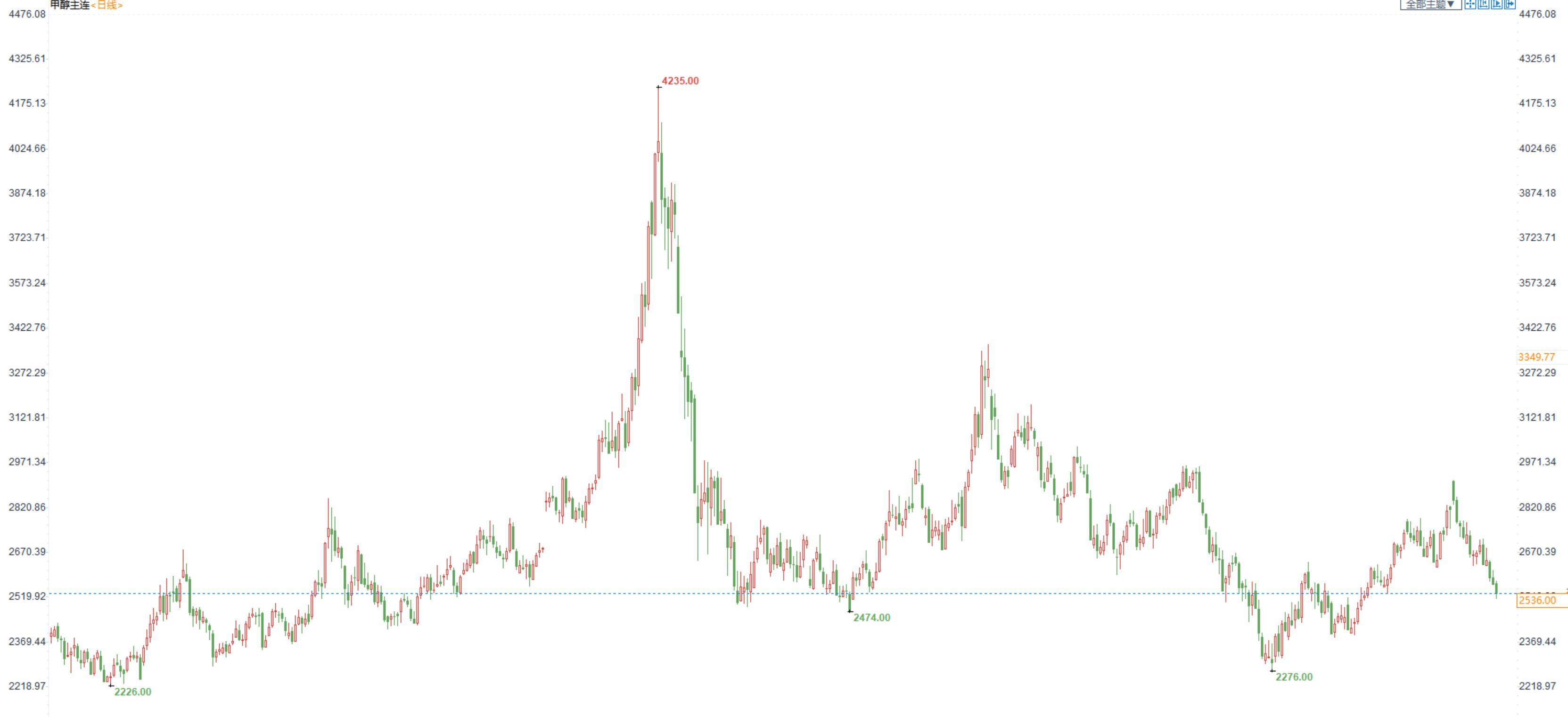 期货市场,甲醇2301合约小幅收跌,收盘价2536。江苏现货报价2830-2840,现货在低库存支撑下,强势于期货价格。