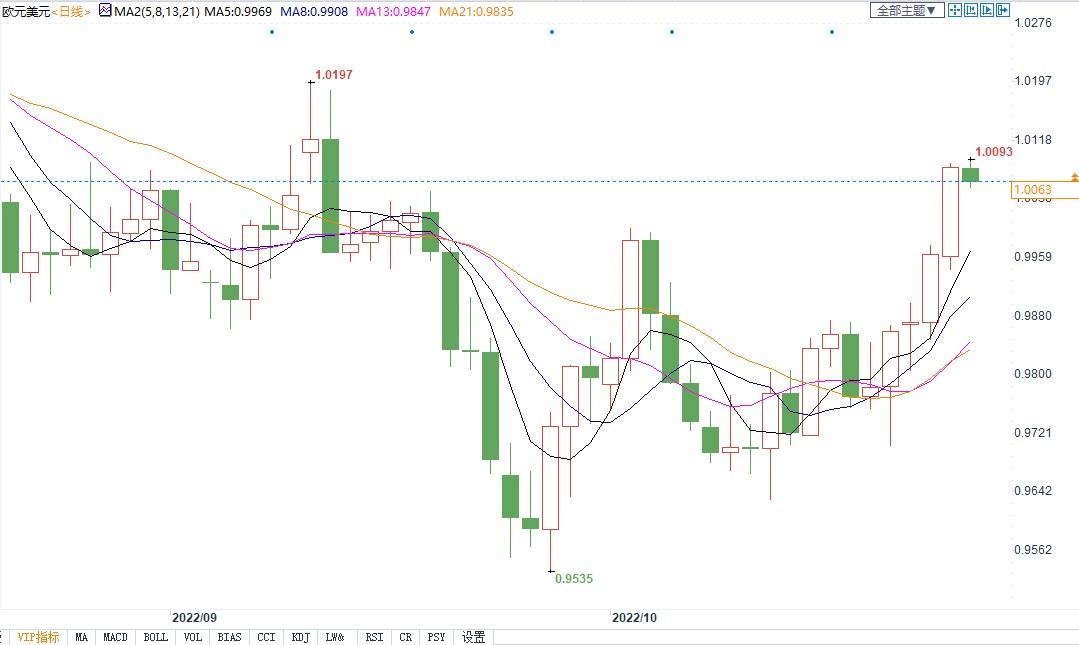 北京时间10月27日15:21,欧元兑美元报1.0063/64