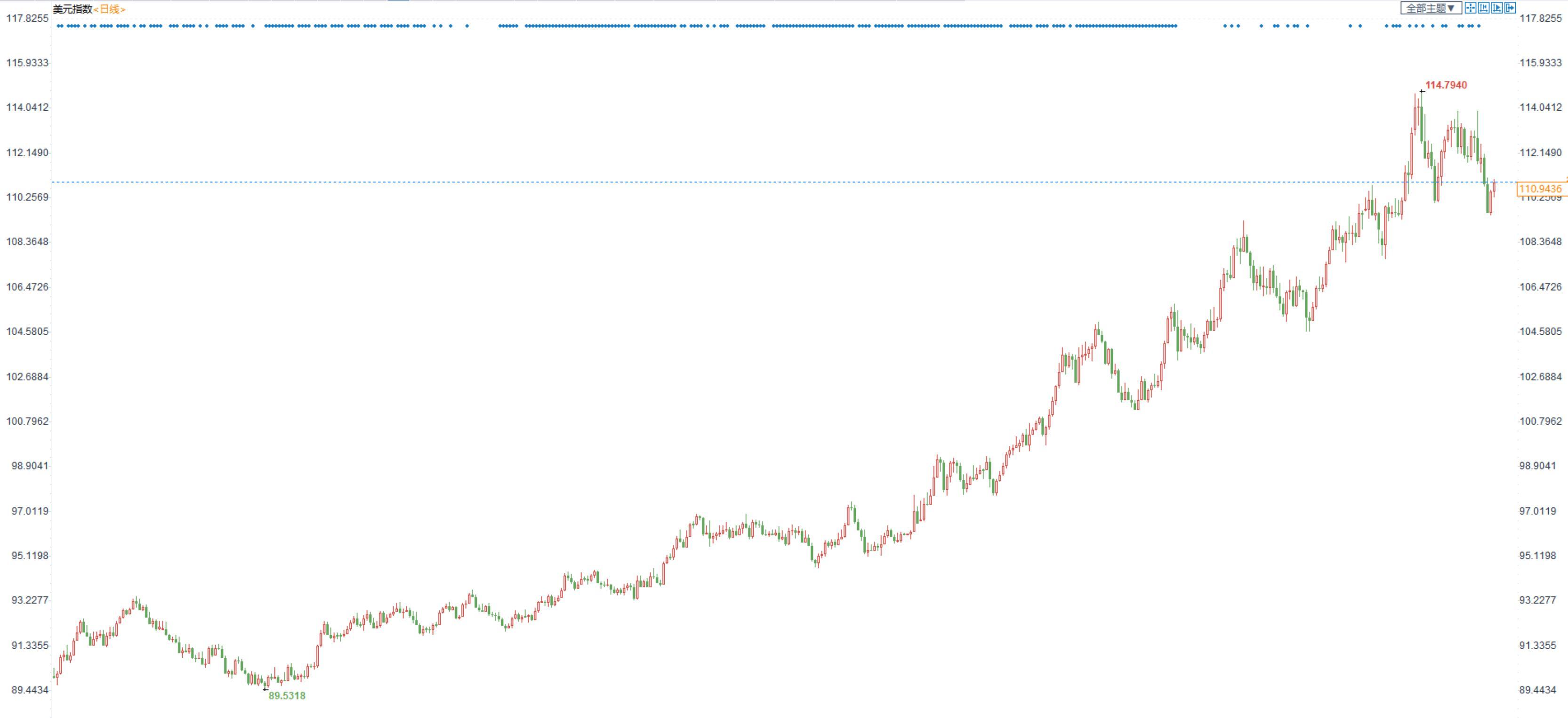 美元指数震荡回落,主要因美联储放缓升息步伐的预期和全球经济衰退的担忧升温,不过地缘局势等避险因素,始终支持美元
