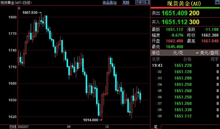 截至发稿,现货黄金下跌0.20%至1652.53美元/盎司;美元指数下跌0.84%至105.688,盘中创9月20日以来新低至109.527。