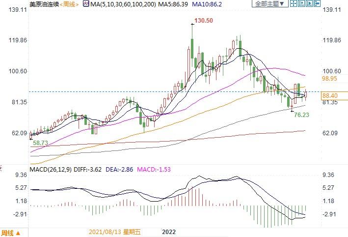 本周美原油涨幅3.88%左右,布油本周涨幅约3.47%,结束此前两周连续下跌势头。因美元指数连续两周走弱,继上周下跌1.25%之后,本周下跌幅度收窄至0.83%左右,支撑了油价。市场情绪趋于乐观,但供给仍然趋紧。北京时间10月28日19:06,美原油报88.40美元/桶。