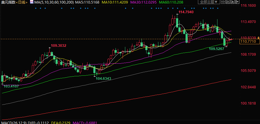 北京时间周一(10月31日)亚市早盘,美元指数交投于110.77附近;美元上周五走强,美国数据显示通胀依然火爆,市场聚焦本周美联储决议,预计将连续第四次加息75个基点;金价下跌超1%,美元和美债收益率攀升;两大指标原油上周周线均势将上涨,因供应担忧和经济数据意外强劲。