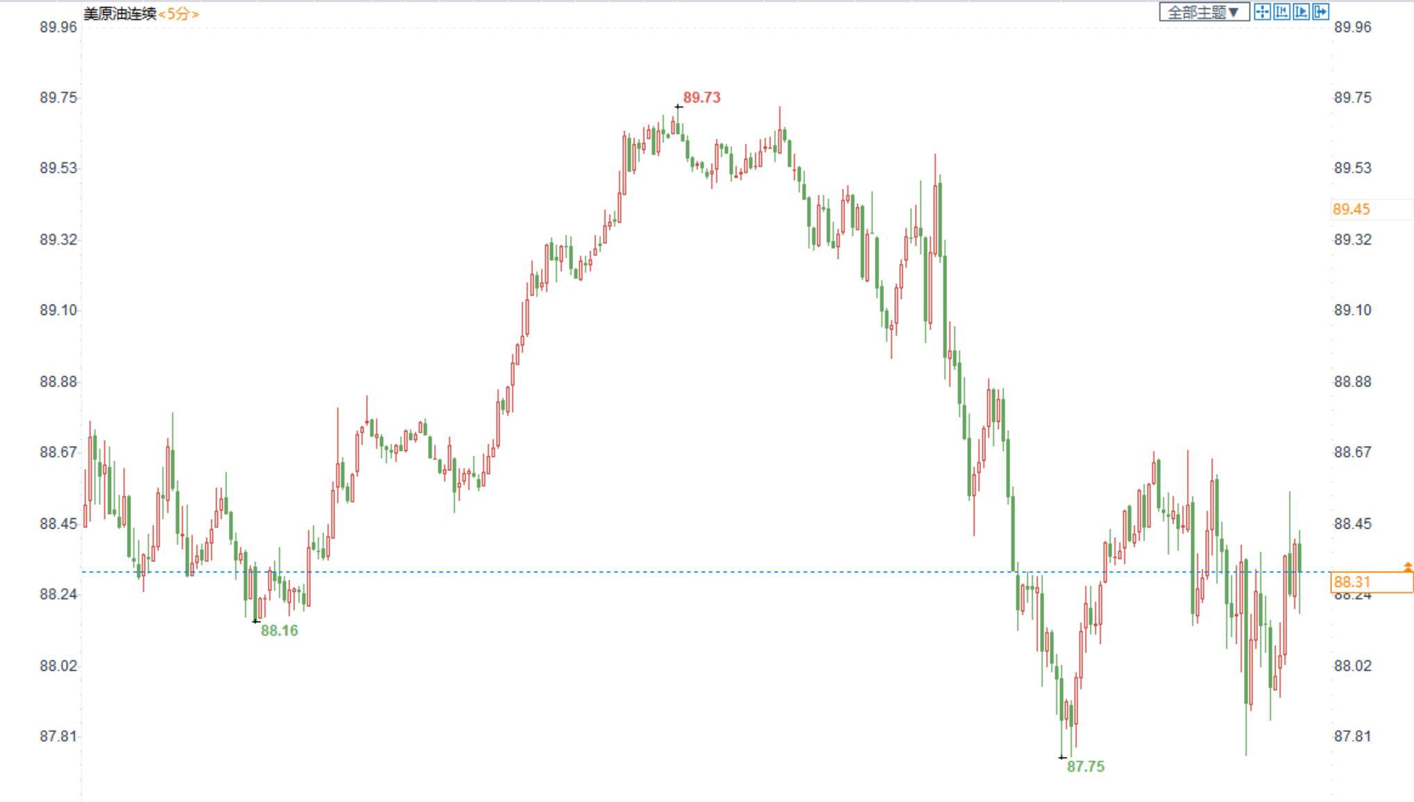 美国原油价格5分钟图显示