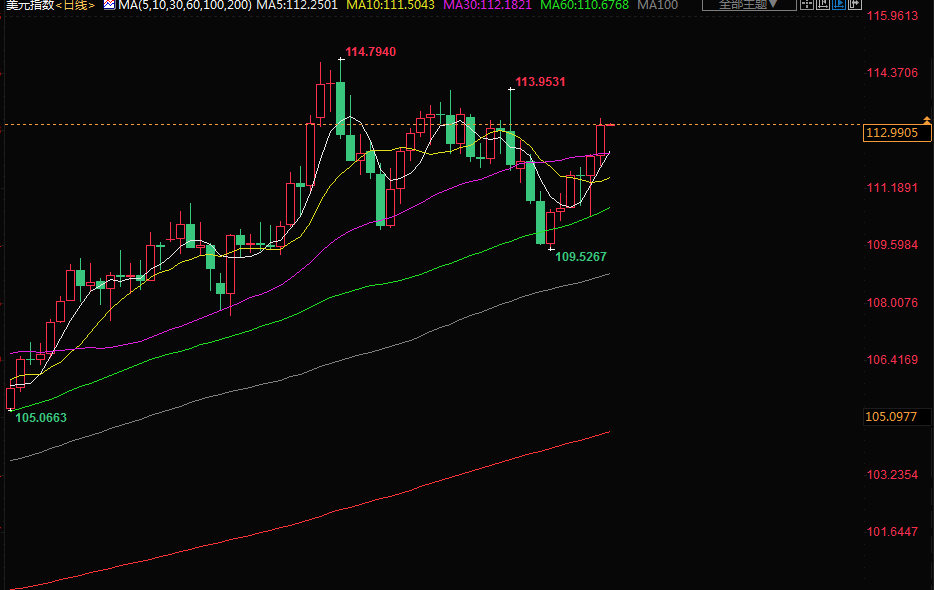 午后交易中,欧元兑美元下跌0.6%,至0.9758美元。这推动美元指数日内上涨0.7%,报112.86,稍早曾触及113.15的10月21日以来最高。