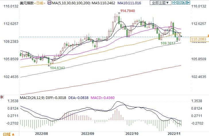 北京时间11月10日13:25,美元指数报110.19