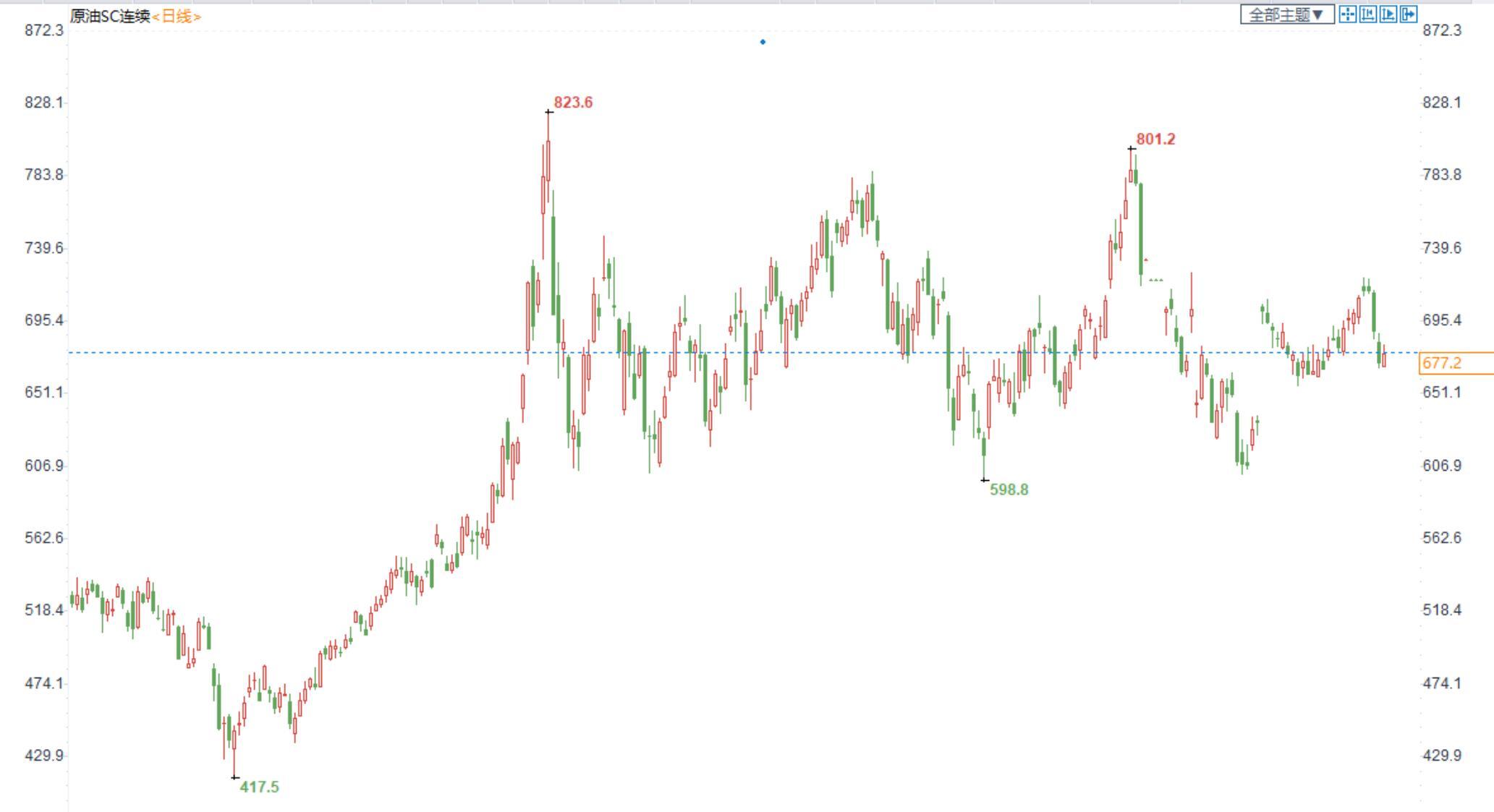 期货市场,布油在95美元附近震荡整理,国内SC2212合约小幅收跌,收盘价689.9。