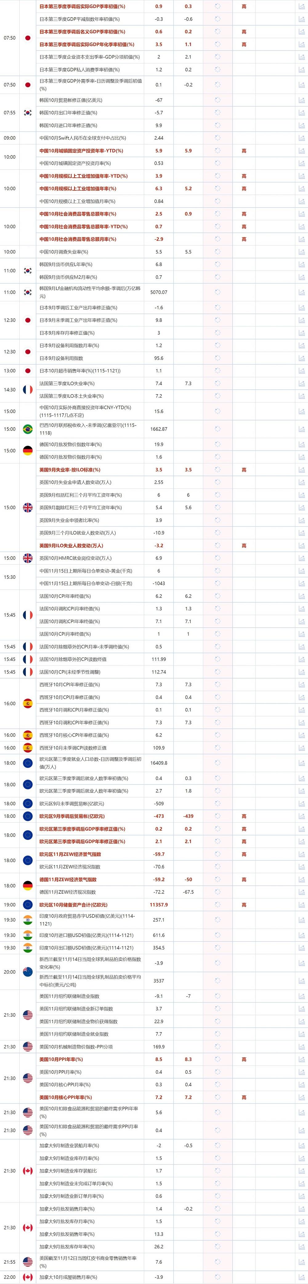 11月15日重点数据和大事件前瞻