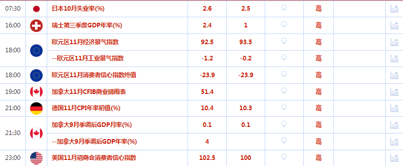 美联储主席鲍威尔将于周三在布鲁金斯学会的一个活动上发表讲话,讨论美国经济和劳动力市场的前景。 另外,美国11月非农就业数据将于周五公布,这可能会改变对美联储12月政策动向的预期。交易员们目前预计会上将加息50个基点。
